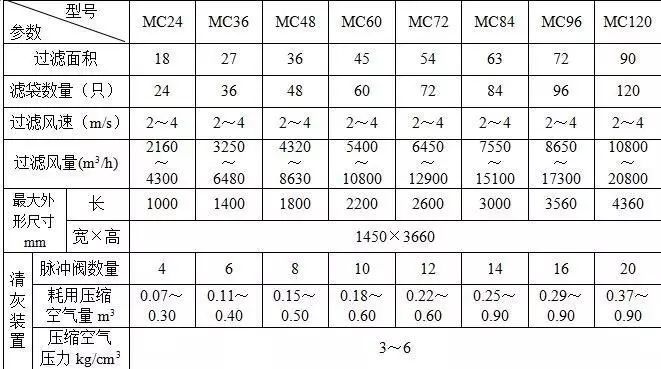 對于過濾常溫(t≤80℃),粘性小、濃度低、顆粒粗的含塵氣體,建議按高檔負荷運行采用過濾風速V=2.0~2.5米/分。