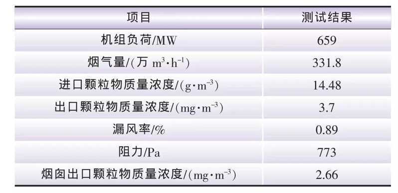 表2 平頂山電廠2號爐超凈電袋性能測試結果
