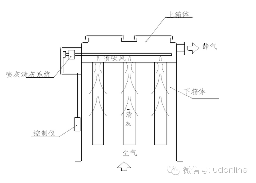 圖1脈沖袋式除塵器基本構(gòu)造及工作原理
