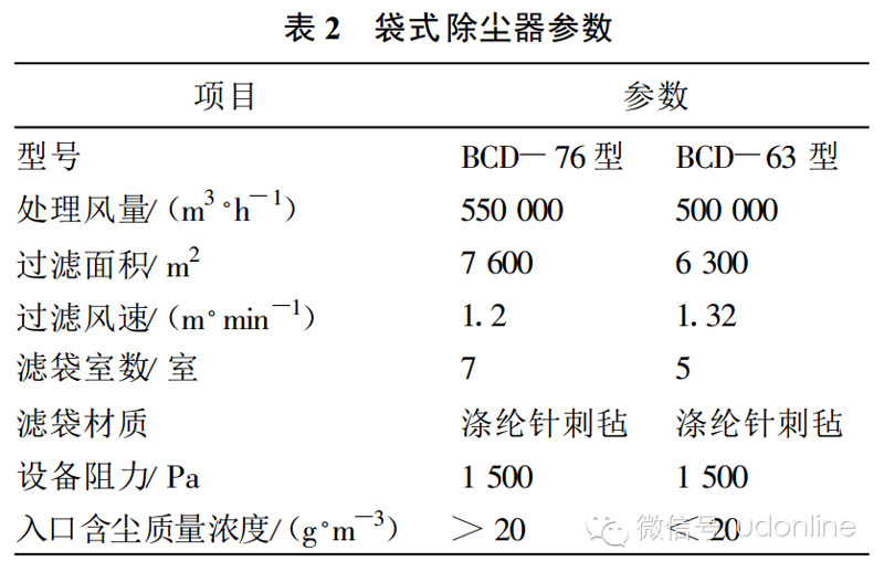 袋式除塵器參數見表 2 。